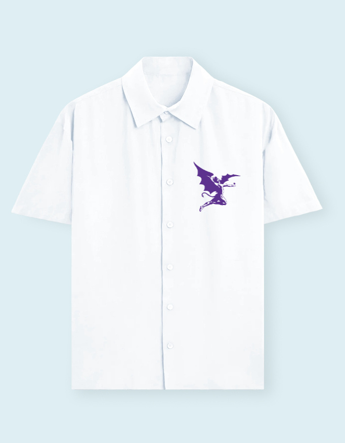 This shirt features an oversized fit that aligns with current fashion trends, offering both comfort and a modern aesthetic look.