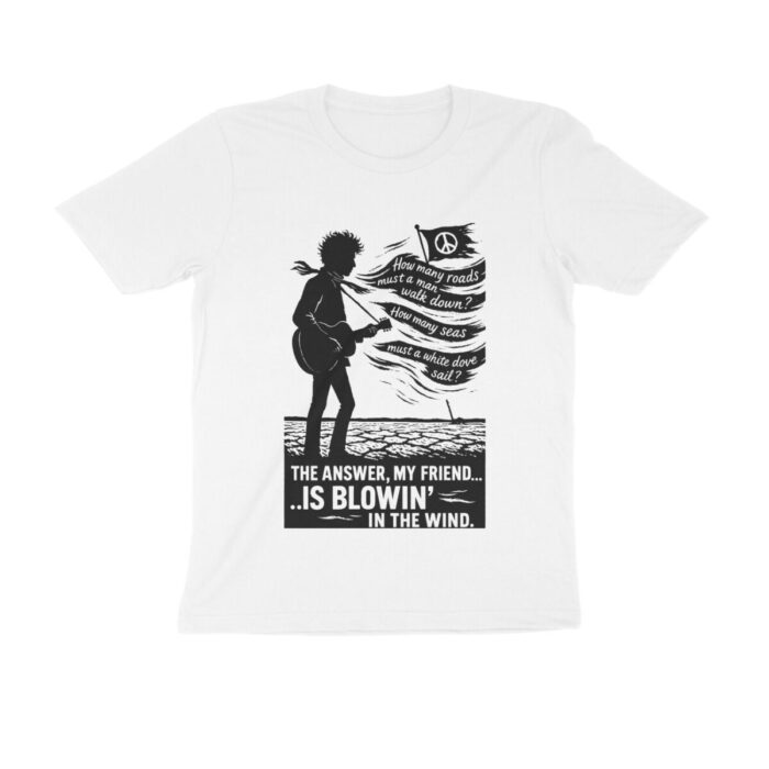 Buy a cool Bob Dylan T-shirt – Blowing in the wind from India’s fastest-growing t-shirt website. All our t-shirts are made from premium 180 GSM cotton fabric. The fabric is soft, breathable, and comfortable for everyday wear.