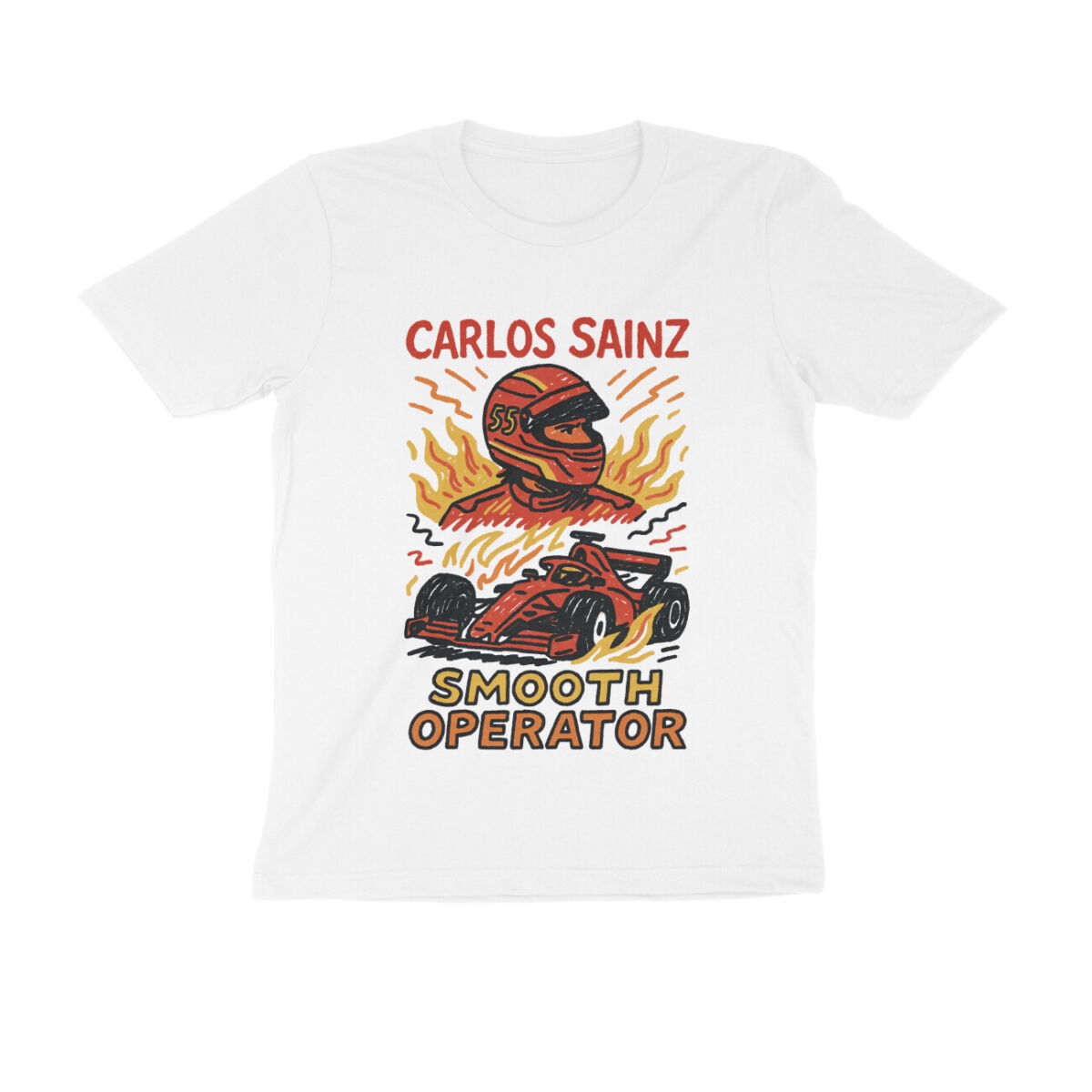 Buy a cool Carlos Sainz T-shirt – Doodle Art from India’s fastest-growing t-shirt website. All our t-shirts are made from premium 180 GSM cotton fabric. The fabric is soft, breathable, and comfortable for everyday wear.