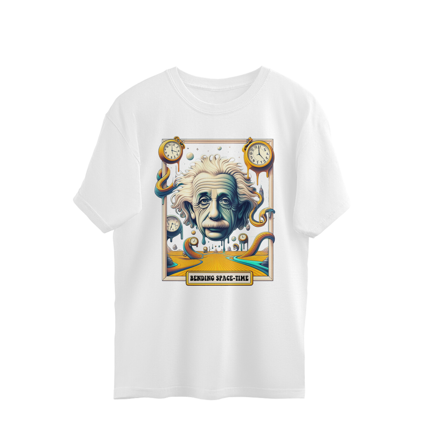 Buy the cool oversized t-shirt with science concepts in salvador dali style featuring Einsetin from India’s fastest-growing t-shirt website. All our oversized t-shirts are made from premium 220 GSM cotton fabric. The fabric is soft, breathable, and comfortable for everyday wear.