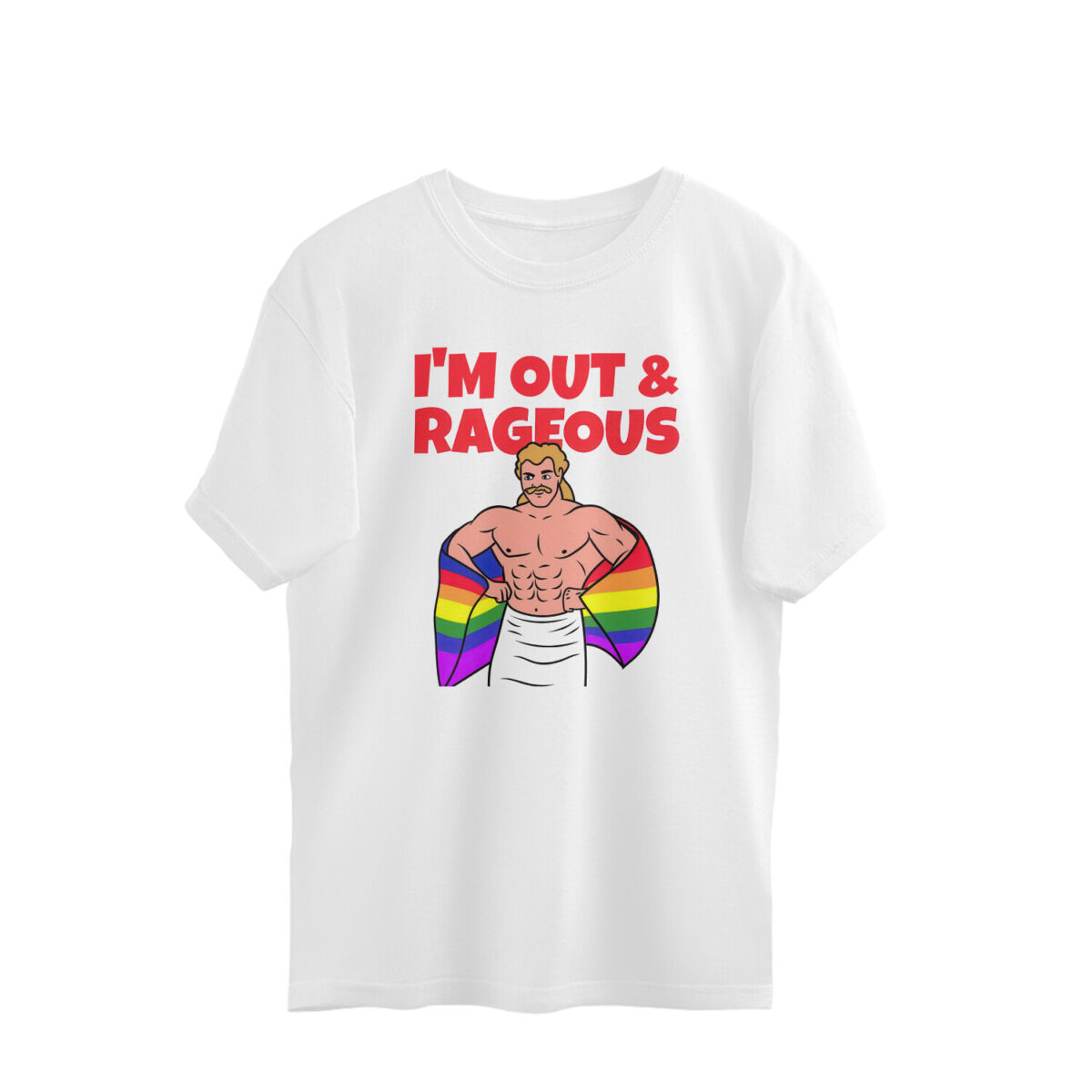 Buy a cool Pride Oversized T-shirt – Out and Rageous from India’s fastest-growing t-shirt website. All our oversized t-shirts are made from premium 220-240 GSM cotton fabric. Our oversized t-shirts provide utmost comfort, perfect drape and look stylish for everyday or party wear.