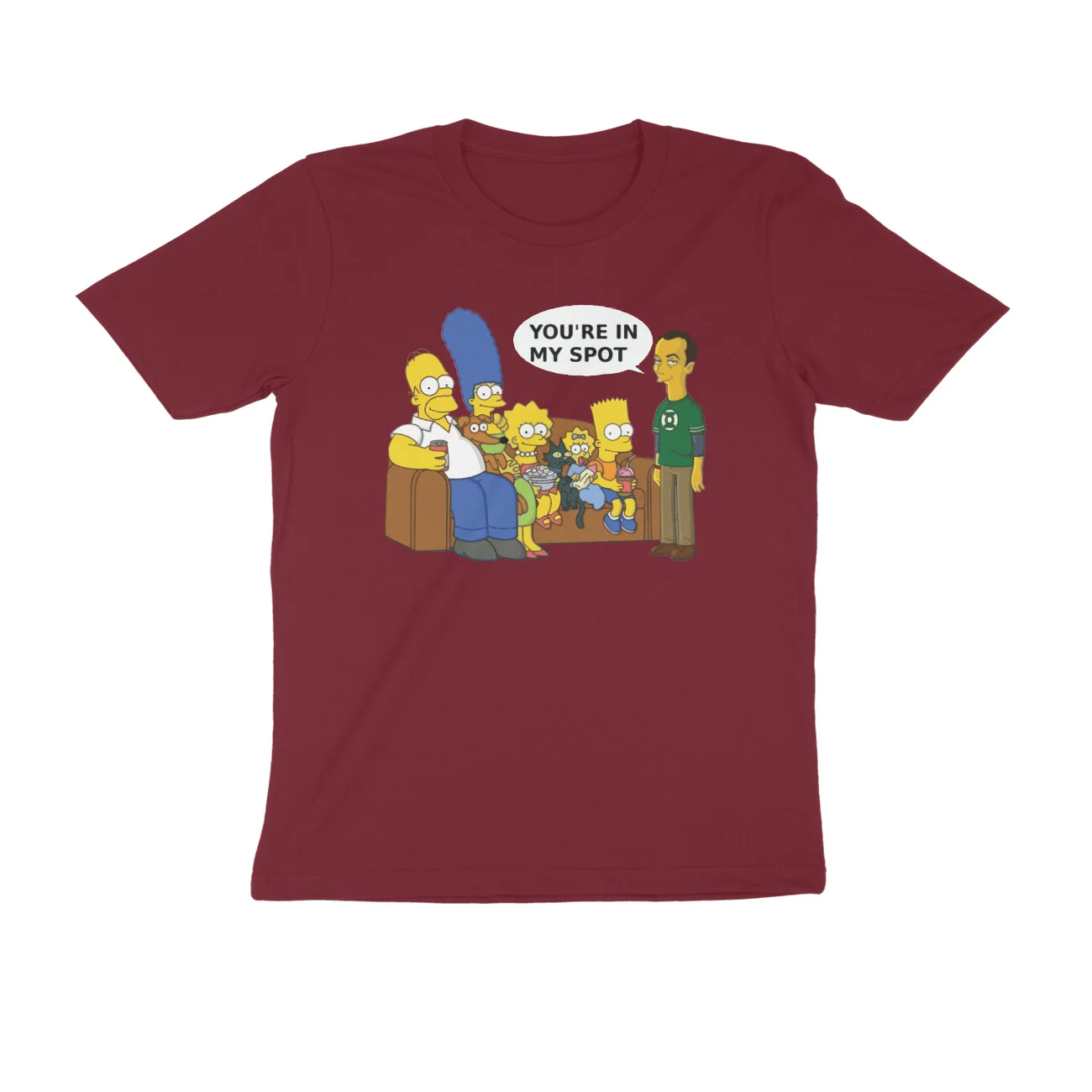 Buy the quirkiest and wittiest t shirt from India’s fastest growing t shirt website. All our made from premium 180 GSM cotton fabric. The fabric is soft, breathable and comfortable for everyday wear. Buy this exclusive t shirt featuring characters from TBBT and Simpsons